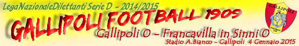 GALLIPOLI 0 - FRANCAVILLA in Sinni 0 GALLIPOLI: Gabrieli, Rizzo P., Lorusso, Legari, Cornacchia, Rosato, Negro(29'st Cortese), Mariano, Di Maira, Mangiapane, Rotunno. In panchina: Costantino, Valentini, Marangon, Santonocito, Luca, Sopcic, Rizzo G., Levanto. Allenatore: Raffaele Quaranta.